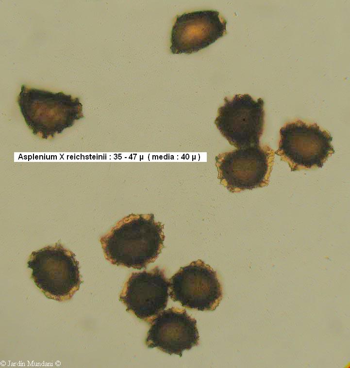 Vigoroso Asplenium X reichsteinii, que guarda un gran parecido con su bisabuelo-padre, el Asplenium fontanum, con el que comparte el 66% de su genoma. El otro 33% procede de su bisabuela, el Asplenium petrarchae ssp. bivalens.