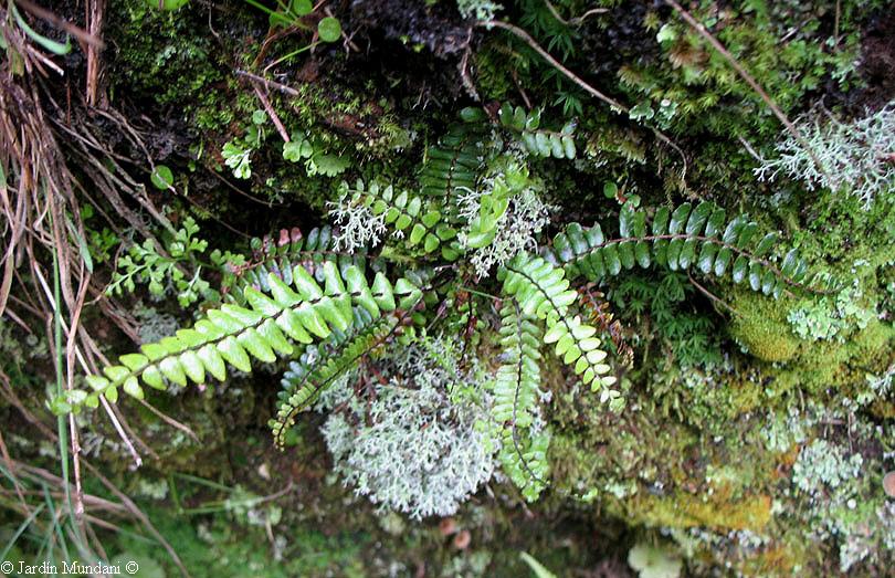 Vigoroso ejemplar de Asplenium anceps creciendo sobre un mullido lecho de musgos y líquenes en un bosque de pinos del Monte Poíso de la Isla de Madeira a 1500 msnm. (Doble click encima de la foto para ampliarla)