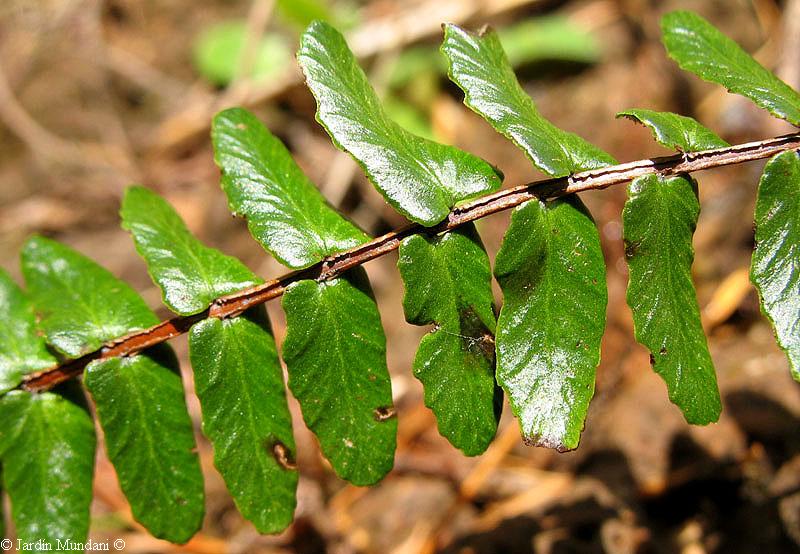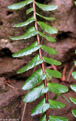 Fronde de Asplenium anceps con sus pinnas alargadas, brillantes y muy coriáceas, que al tacto parecen de plástico.