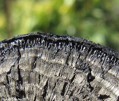 Detalle del corte anterior con las capas concéntricas, la última de las cuales está llena de esporas negras que se van dispersando ayudadas por el viento.