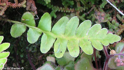 Fronde nueva de Ceterach lolegnamense a principios de mayo. Las pinnas son más alargadas que las de su progenitor Ceterach octoploideum.