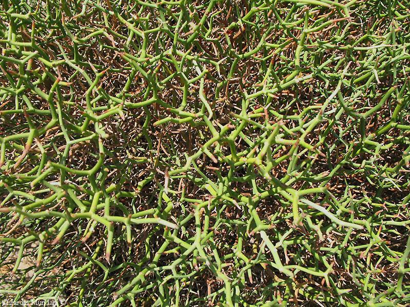 Tallo tierno de Femeniasia balearica a principios de junio. Cada uno de los pequeños brotes acaba en tres espinas divergentes.