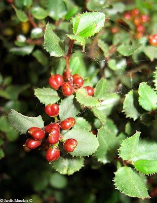 El endemismo Rhamnus ludovici-salvatoris, dedicado al Archiduque Luís Salvador de Austria, ama el sol directo de la alta montaña de Mallorca, Menorca y Cabrera. La fotografía de sus bellísimos frutos rojos fue tomada en un viejo olivar de la aldea de Caimari.