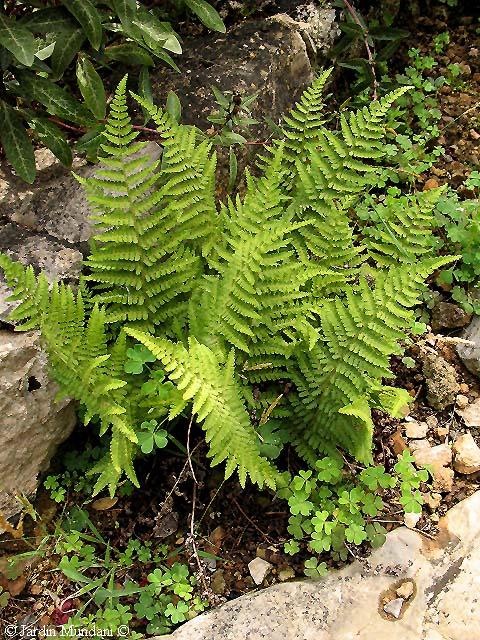 En las montañas de la Serra de Tramuntana vive un helecho cuya historia tiene también una estrecha relación con el Mioceno tardío. Se trata de la Dryopteris pallida subsp. balearica. Al igual que el Arum pictum y la Paeonia cambessedesii este helecho enano de la família de las Aspidiaceae también procede del continente europeo. Antes de colonizar las montañas baleares en Europa vivía la Dryopteris pallida subsp. pallida, un helecho robusto de grandes frondes que se había hibridado con la Dryopteris oreades y había dado lugar a un híbrido alotetraploide, la Dryopteris tyrrhena.