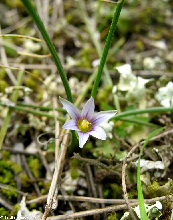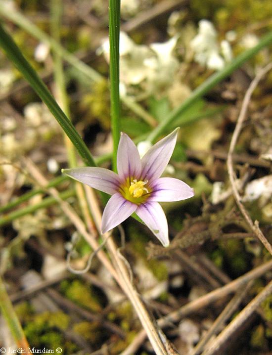 lateral de una flor de Romulea assumptionis. Su única flor se abre en