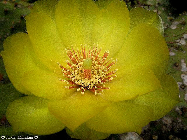 Flor de Opuntia inamoena del Brasil, fotografiada en mayo en el extraordinario Jardín botánico de la Orotava en Tenerife.