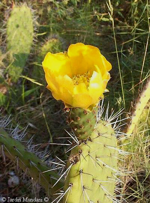 Flor de Opuntia picardoi en junio protegida por espinas temibles.