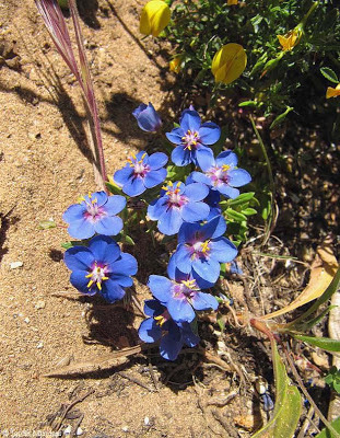 Estas florecillas de Anagallis monelli eran como manchitas de cielo sobre el suelo arenoso. Me llamó la atención su gran tamaño pues son más grandes que las de la Anagallis arvensis.