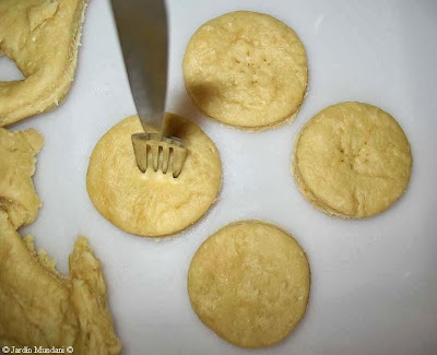 Con la ayuda de un pequeño tenedor he pinchado el centro de cada galleta.