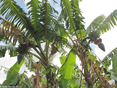 El rizoma va produciendo hijuelos que van creciendo hasta florecer y fructificar. Una vez los plátanos han madurado, el tallo muere y es sustituido por uno o más hijuelos nuevos. En la foto de un platanar de Tazacorte se puede ver un tallo cortado que ya ha fructificado, un tallo que está fructificando y un pequeño hijuelo que lo sustituirá.