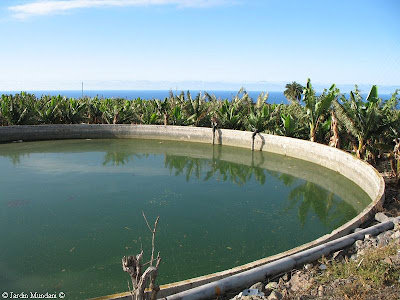 En las Islas Canarias se construyeron enormes balsas por encima de las plantaciones bananeras para poderlas regar por gravedad sin necesidad de ninguna maquinaria de bombeo. Las plataneras están sembradas en bancales escalonados, siguiendo la orografía de las laderas volcánicas. Cada agricultor posee en propiedad unas horas semanales de agua de riego con su propia tubería conectada a la balsa comunitaria y una llave de paso cerrada con candado para evitar el robo de agua. La maraña de tubos entrecruzados es espectacular. Solamente el acequiero, que los canarios llaman canalero, es capaz de saber a quién pertenece cada tubería y cada candado.
