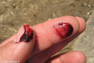 Las flores tienen 5 pétalos y son diminutas. Para hacernos una idea basta comparar la flor de la imagen con la yema del dedo anular de mi mano izquierda.