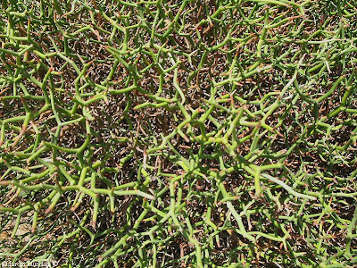 A veces la distinción entre hojas y espinas no es nada facil, ya que con frecuencia hay muchas formas intermedias. En la imagen se ven bastantes hojas con espinas. Es posible que este fenómeno sea un mecanismo adaptativo para evitar la depredación de sus suculentas hojas por los herbívoros.