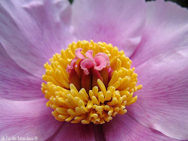 Detalle de los órganos reproductores de dos flores de lúcumo de seda.