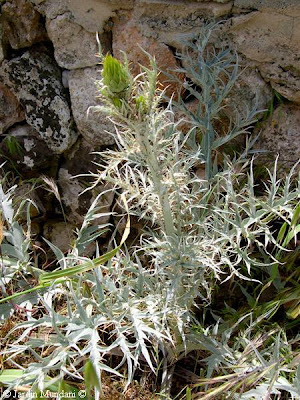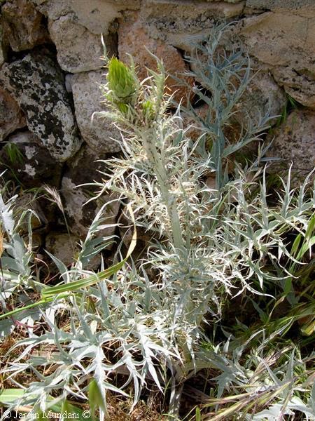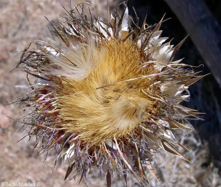 Capítulo floral anterior protegido por peligrosas espinas finas como agujas.